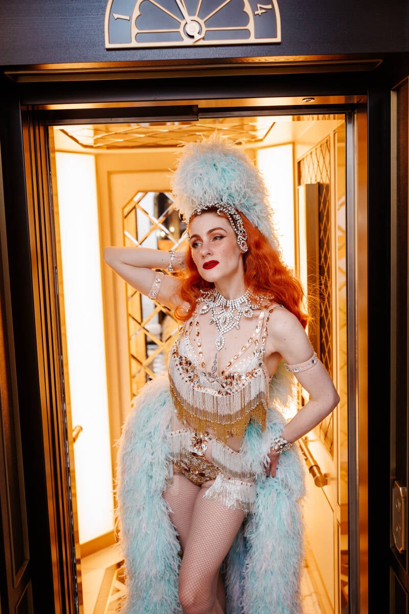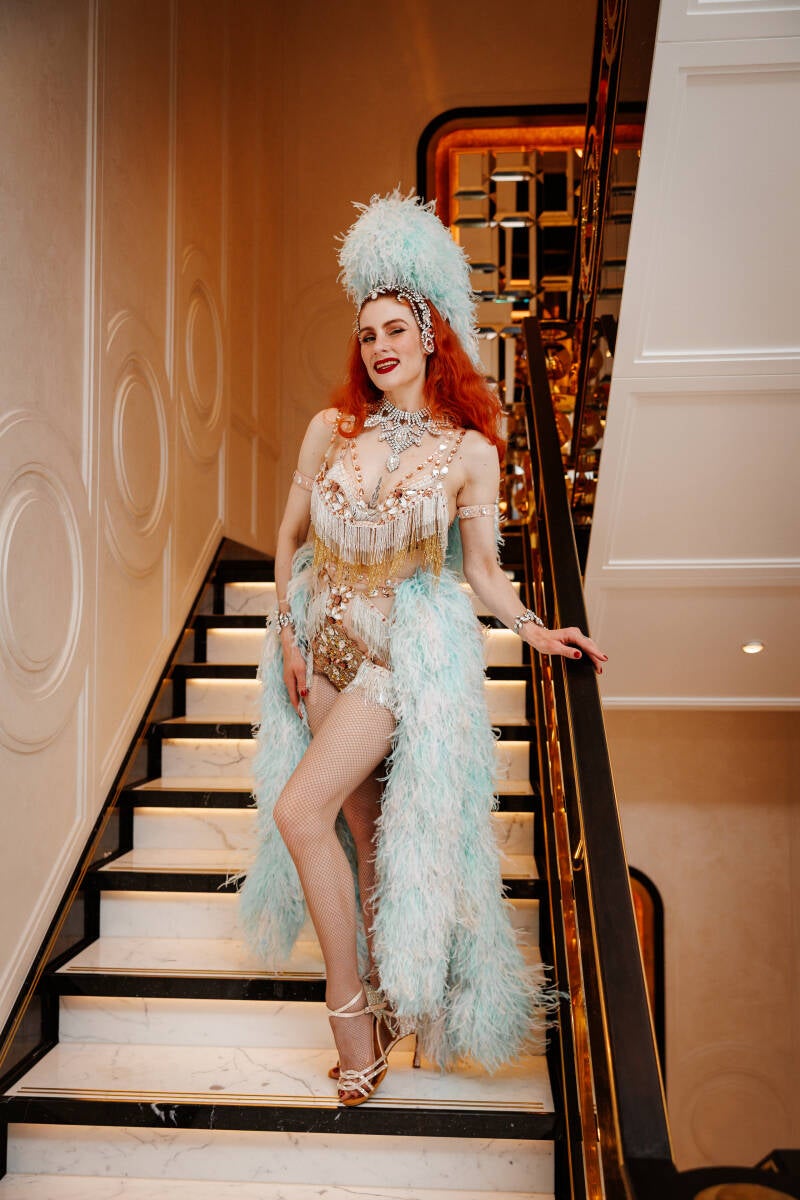 La Rubinia verkörpert den wahrgewordenen Las Vegas Showgirl Traum in ihrem schillernden Kostüm.