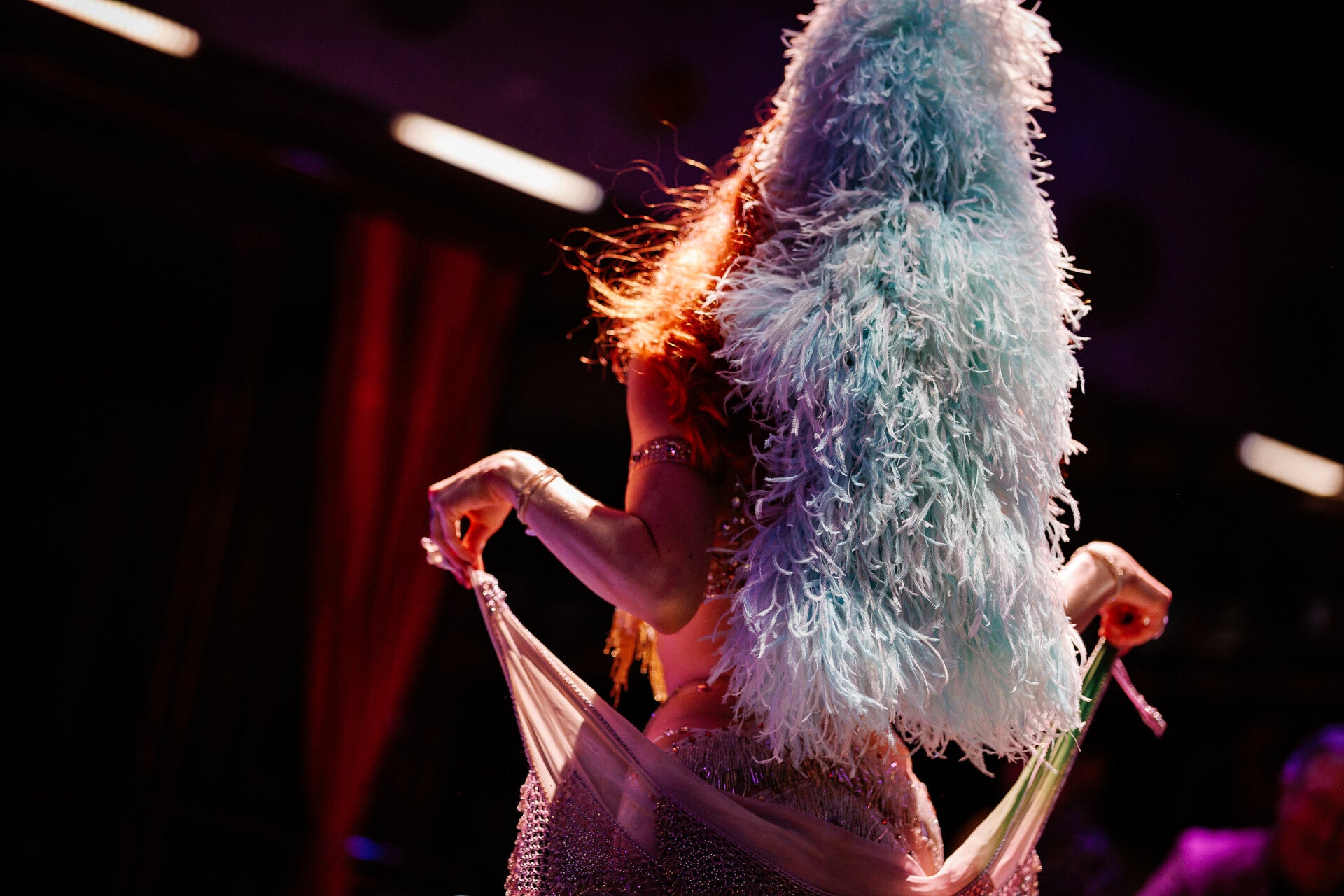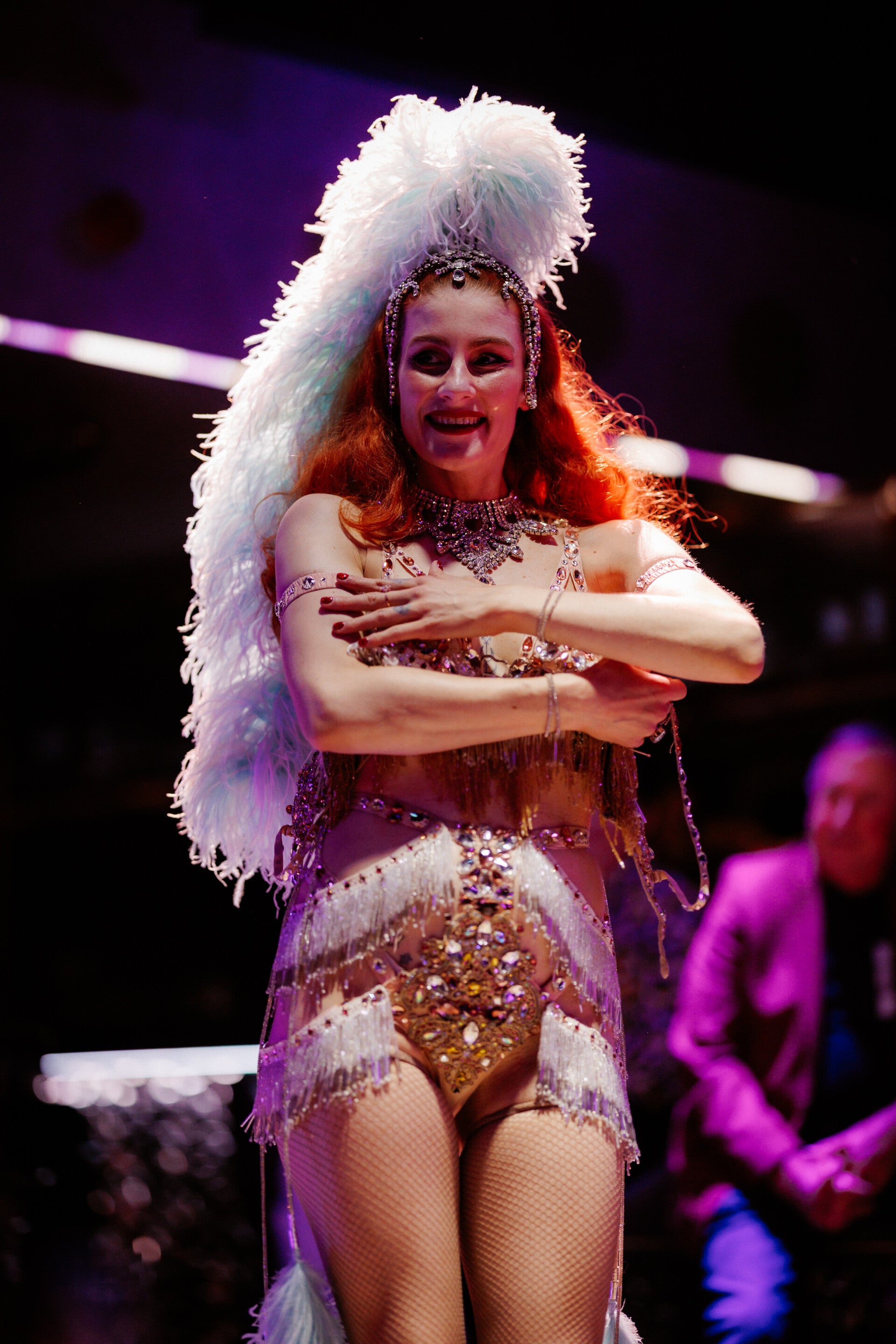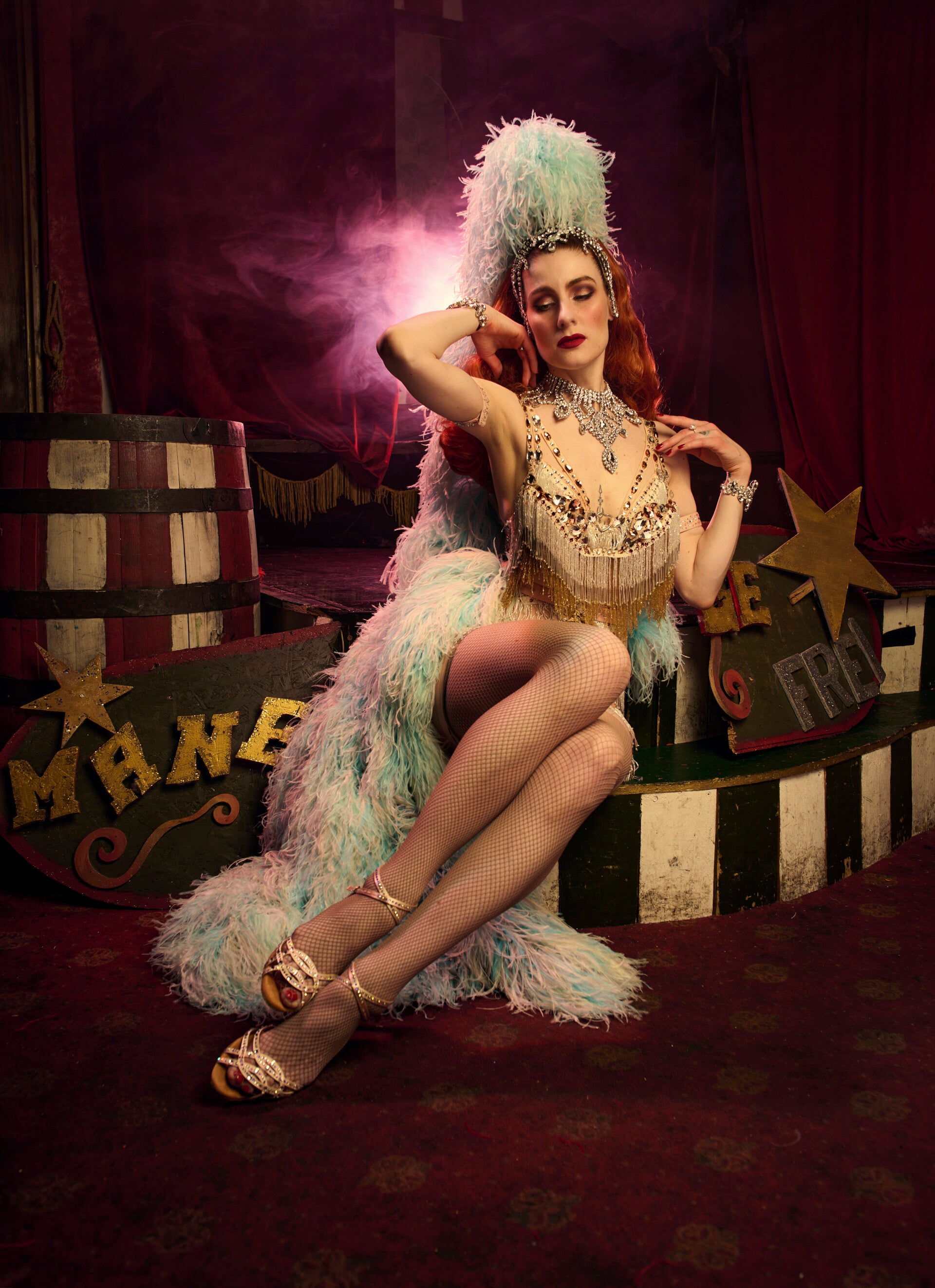 Props: XL Feather Boas, classic Vegas-Show-Feather-Headpiece (for bigger/higher stage ceilings) or a smaller Feather-Headpiece (for low ceilings)